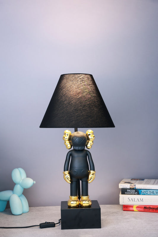 Kaws-Inspired Table Lamp with Matte Black & Gold-Plated Kaws Sculptures (30 x 61 x 30 cm)