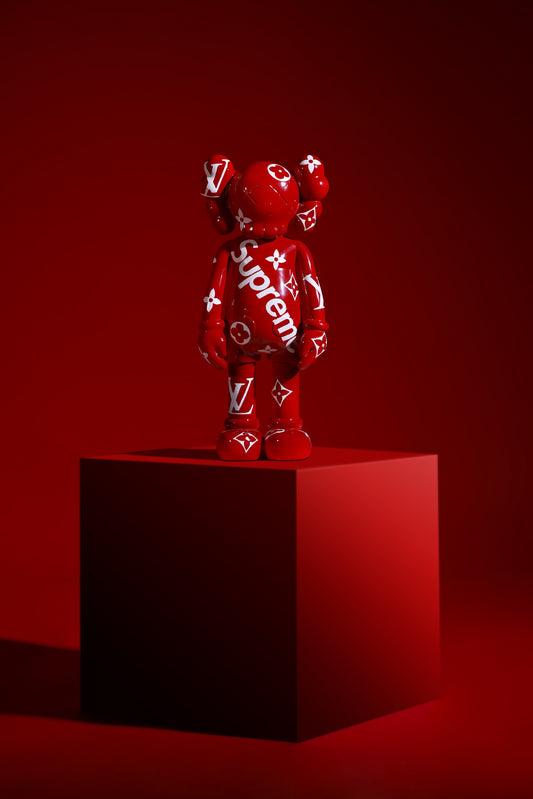 Kaws Sculpture Red Louis Vuitton x Supreme Collaboration (14 x 30 x 8 cm)