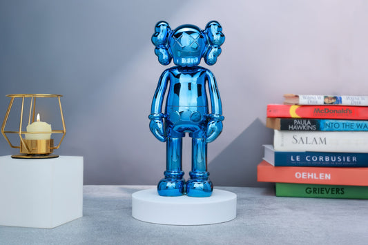 Kaws Sculpture Vibrant Blue Metallic Chrome Collection Home Decor (14 x 30 x 8 cm)