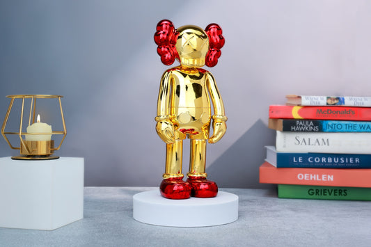 Kaws Sculpture Chrome Gold with Red Metallic Accents Home Decor (14 x 30 x 8 cm)