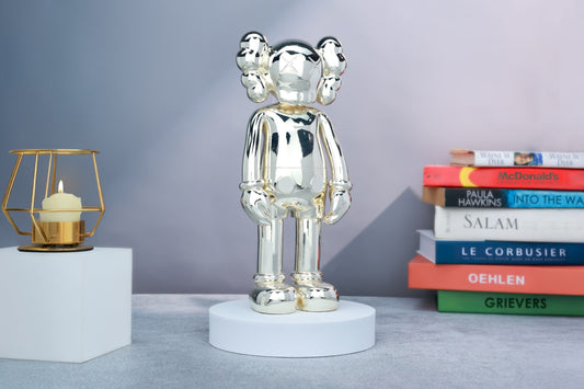 Kaws Sculpture Metallic Silver Chrome Collection Home Decor (14 x 30 x 8 cm)
