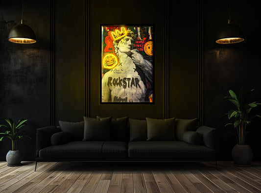 Michelangelo's David Graffiti Wall Art with LED Lights – Home Decor (50 x 65 x 5 cm)