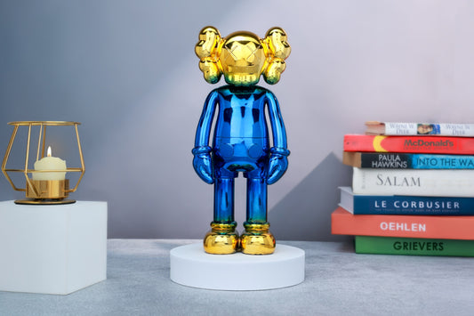 Kaws Sculpture Blue & Gold Pop Art Icon Home Decor (14 x 30 x 8 cm)