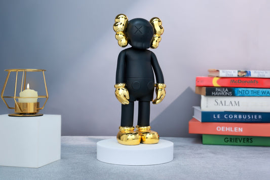 Kaws Sculpture Matte Black with Gold Chrome Accents Home Decor (14 x 30 x 8 cm)