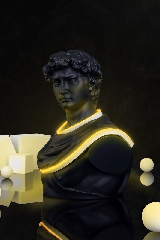 Michelangelo's David Matte Black Home Decor Sculpture with Light